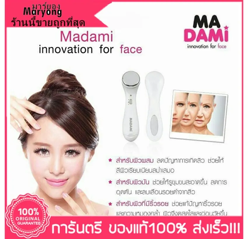 MADAMI INNOVATION FOR FACE V-Shape มาดามิ เครื่องนวดหน้าเรียว ยกกระชับ ลดความหมองคล้ำ ลดความมัน ขจัดสิวอุดตัน สิวเสี้ยน 9 ชิ้น ผ่อนคลายสบายผิวหน้า ริ้วรอยไม่ถามหา ด้วยเครื่องนวดหน้าไร้สาย ขจัดสิ่งสกปรกและยกกระชับผิวด้วยปะจุไฟฟ้า แค่การบำรุงคงไม่เพียงพอ! เตรียมมาดูแลผิวสวยให้ไม่ยิ่ง “หย่อน” ย้อนมองกี่ที่ก็ดูกระชับได้ไม่แพ้ผู้เชี่ยวชาญด้วย เครื่องนวดหน้าป้องกันริ้วรอย ย่อส่วนนวัตกรรมความงามในการปรนนิบัติผิวทั้งการนวดหน้า ยกกระชับผิว หรือขจัดสิ่งสกปรกที่ตกค้างอยู่บนใบหน้าได้อย่างดีเยี่ยม หัวนวดผลิตจากสแตนเลส คุณภาพสูง ไม่ระคายเคืองแม้ผิวแพ้ง่าย ช่วยทำความสะอาดสิ่งสกปรกที่ฝังลึกในรูขุมขนได้อย่างหมดจด เพิ่มความชุ่มชื้นให้ผิวได้ลึกถึงระดับเซลล์ผิวชั้นล่าง และยกกระชับผิวหน้าจากประจุไฟฟ้า บวก ลบ (Galvanic Ion) เมื่อใช้ในขั้นตอนการบำรุงผิว เสริมประสิทธิภาพในการบำรุงผิวมากขึ้นเมื่อใช้ร่วมกับผลิตภัณฑ์บำรุงผิวหน้าที่คุณใช้อยู่เป็นประจำ ทั้งครีมบำรุงผิว ไวท์เทนนิ่งครีม หรือผลิตภัณฑ์ยกกระชับ ซึ่งทำให้เห็นผลได้เร็วขึ้น ใช้งานง่ายด้วยแบบไร้สาย ขนาดกะทัดรัด พกพาไปใช้สะดวกได้ทุกที่ เราแนะนำ